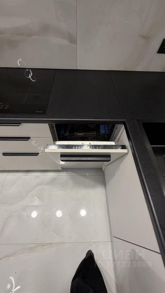 Кухня: Посудомоечная машина, индукционная варочная панель, фильтр питьевой воды, микроволновка, кофемашина и необходимая посуда.