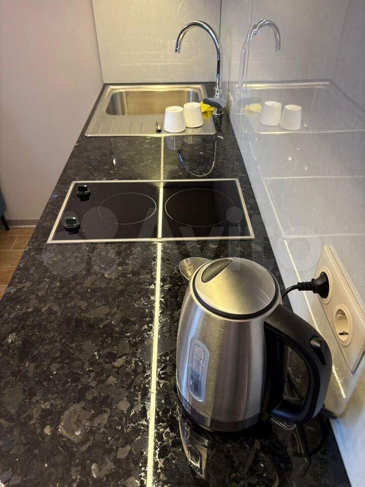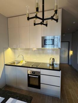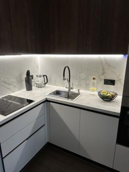 - Встроенная кухня с варочной панелью, посудомойкой, вытяжкой; микроволновка, холодильник,