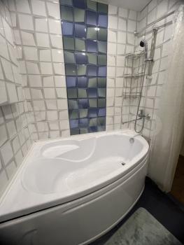 Санузел раздельный, глубокая ванная. Стиральная машина. На кухне: холодильник, кухонный комбайн, фильтр питьевой воды ("фильтры под мойку"), тостер, мультиварка, СВЧ.