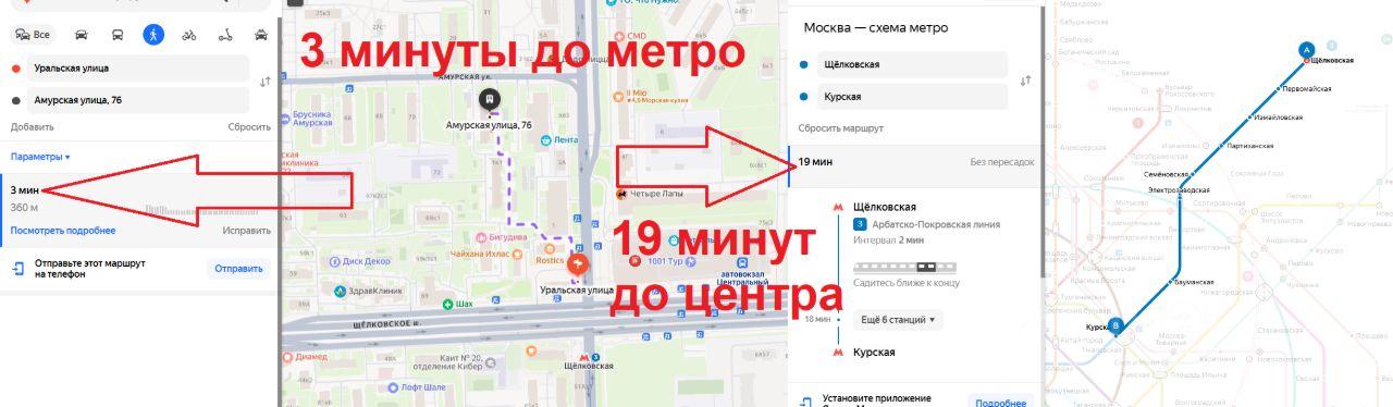 Почему эта квартира? - Очень тихий двор ! Тихий дом. Я бы сказал, атмосфера в подъезде максимально дружелюбная и адекватная, без "но" ! Совершенно все магазины под боком. Дикси , Лента, Пятерка, Перекресток, Чижик, ТЦ Щелковский 400 метров от подъезда ! Но тихо! Т.к до этого дома люди от метро не доходят. Им тут нечего делать. Парковка с 4 шлагбаумами. А также две парковки подземных теплых. 12 минут пешком до одного леса большого - Лосины остров. 3 км до другого - Измайловский парк. А также большой и малый пруды Гольяновские. Место гулять много, в том числе Сиреневый бульвар, Сиреневый сад. прямой автобус до МЦК. Что еще нужно для жизни) И да, 19 минут до Курской. Это тоже весомый плюс.