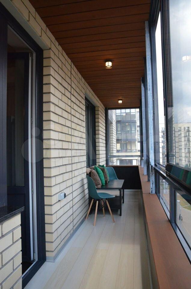 Большая утеплённая лоджия с отделкой «люкс» может использоваться как дополнительное комфортное пространство для отдыха или работы.
