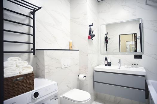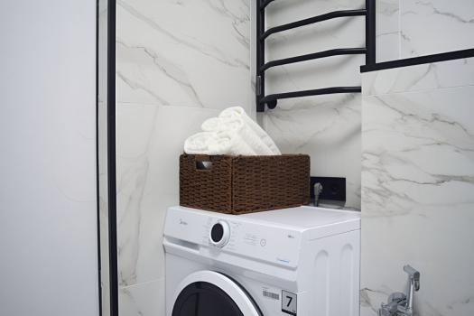 В ванной комнате установлена стиральная машина, есть тропический душ.