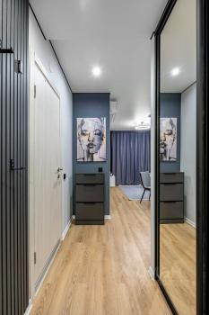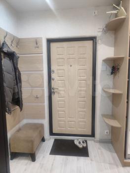 Входная группа оборудована двухстворчатым вместительным шкафом, где так же присутствует безпроводной пылесос.