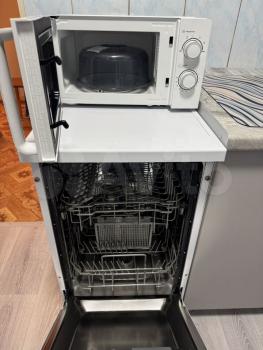 В квартире есть все необходимое для комфортного проживания. Телевизор, холодильник, стиральная машина, газовая плита с духовым шкафом, микроволновка.
