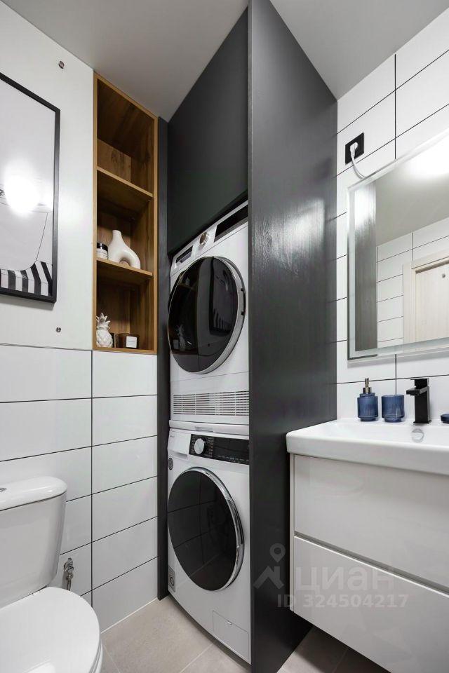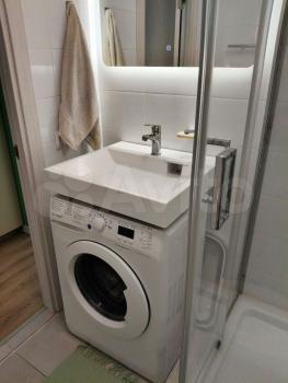Стиральная машина с функцией Сушки, зеркало, весь необходимый инвентарь.