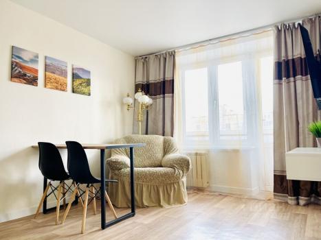 В квартире сделан косметический ремонт. В комнатах и на кухне есть вся необходимая мебель. Оснащение включает холодильник и стиральную машину, Ванная комната оборудована полноценной ванной, а балкон позволит вам наслаждаться свежим воздухом и видом на парк.