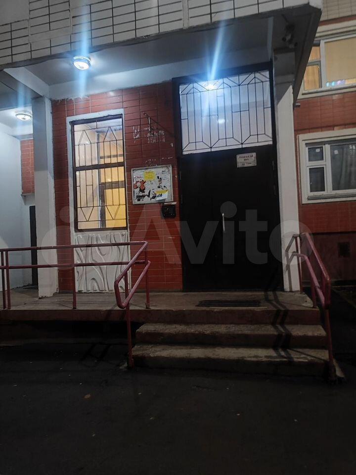 Закрытый вход в подъезд.