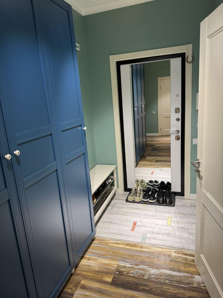 Продуманная планировка: полноценная спальня с рабочей зоной, кухня-гостиная. Есть отдельная гардеробная и продуманные системы хранения. Кровать и диван.