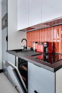 Полное оснащение: Smart TV, бесплатный Wi-Fi, стиральная машина, вся необходимая посуда и даже приветственный набор (чай, кофе, сахар, соль, специи).