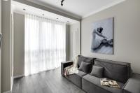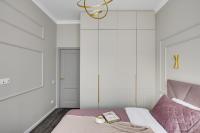 Гарантия отличного сна: уютная спальня с двуспальной кроватью 160x200 см с ортопедическим матрацем и шторами blackout для полного затемнения. В гостиной — удобный раскладной диван.
