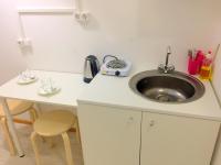Есть двухспальная кровать, стол, 2 стула, телевизор, кухонный блок с необходимой посудой и электроприборами.Санузел совмещенный - душ, туалет и раковина.