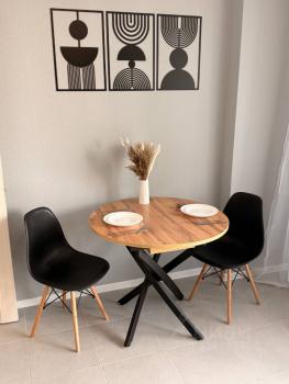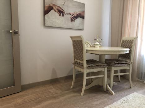 Продуманная планировка, светлое пространство, удобная кухня и жилая зона. Есть уютный балкон со столиком и стульями , откуда открывается отличный вид из окна.