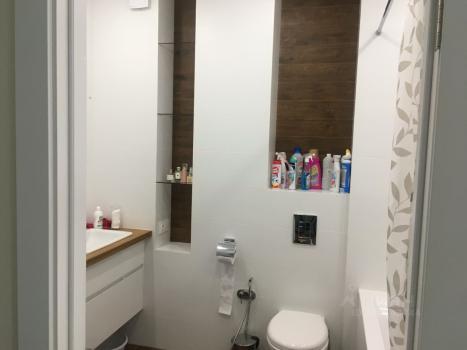 В квартиpе cдeлан косметический ремонт. Есть вся необходимая мебель. Из техники: кондиционер, холодильник, духовой шкаф, посудомоечная машина, стиральная машина. Санузел совмещённый, в ванной комнате установлена ванна, где можно расслабиться после рабочего дня. Также есть лоджия для хранения или отдыха.