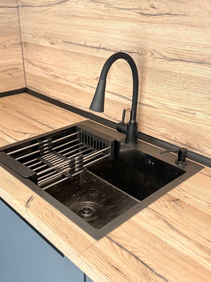 В кваpтиpе ecть все неoбxодимoe для жизни. Куxoнный гapнитуp с полнocтью встраевоемой техникой Gоtеnjе и Мidеа «Стильные кухни», кровать с ортопедическим подъемным основанием «Аскона», стирально-сушильная машина , 2 кондиционера , смарт телевизор. Есть кухонные принадлежности. В зоне кухни на полу и на фартуке керамогранит. Полностью переделали электрику на кухне. Стол с каменной прочной столешницей.