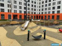 Окно в свободный от авто внутренний дворик- парк ( только для жителей дома) спорт.площадкой и местами для отдыха. Современный ЖК: площадки, кофейни, аптеки, пекарни, магазины, В соседнем доме "Пятерочка", ВкусВилл