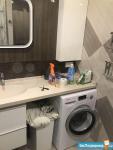 В квартире есть двуспальная кровать и раскладной диван. Из техники есть все (вся техника Бош), включая посудомойку и кондиционер. Места хранения: большой шкаф-купе и гардеробная. Большая лоджия.