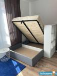 В студии именно кровать, а не диван, потому что полноценный сон возможен только на хорошем матрасе. Ширина спального места 140 см, подходит для комфортно сна, как одному, так и двоим людям. Новый ортопедический матрас с независимым пружинным блоком от фабрики аскона.