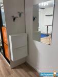 В прихожей есть обувница, вешалка, крючки и зеркало.