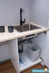 - Укомплектованная кухня: посуда и приборы, микроволновка, плита, френч пресс и прочие нужные вещи (холодильника во время фото еще не было, но будет - новый)