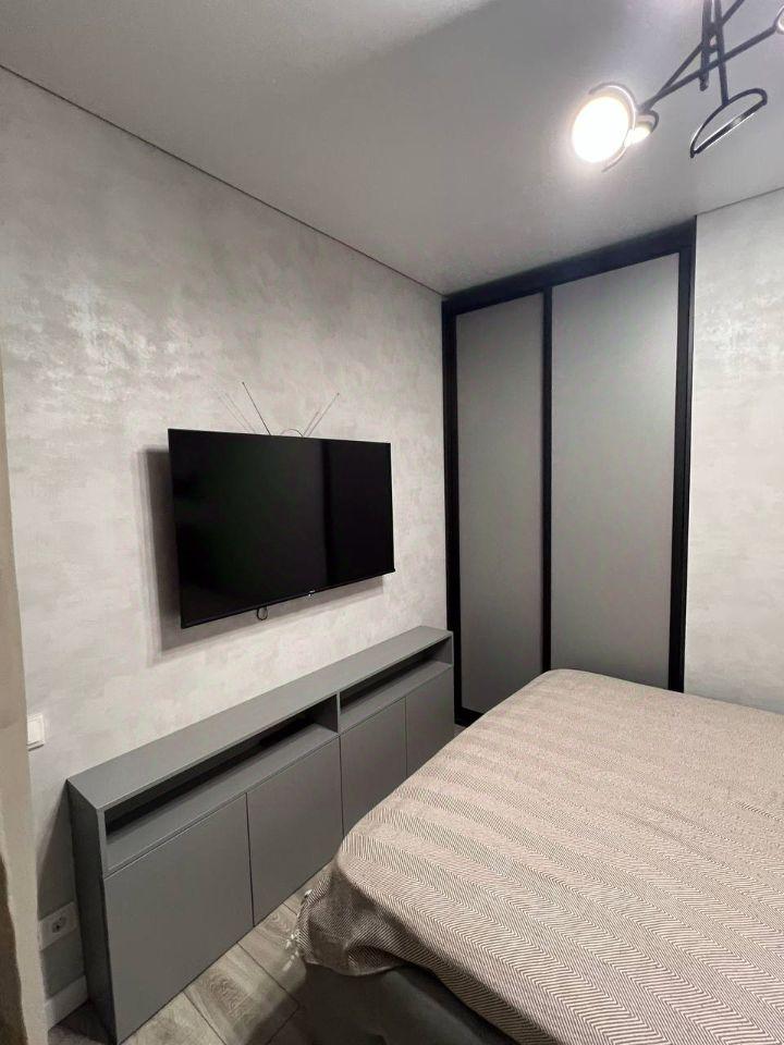 Квартира из себя представляет большую комнату, зонально разделенную на спальную зону и на lounge зону с большим телевизором и удобным диваном + большая кухня со всей необходимой техникой + большая прихожая с многочисленными зонами хранения + и огромный балкон со встроенным шкафом на 5 секций, с креслом, дополнительной зоной хранения и складным рабочим местом. Есть отлично работающий кондиционер.