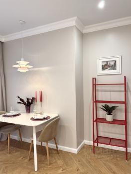 Квартира полностью укомлектована для комфортного проживания: стиральная машина и холодильник, индукционная плита, микроволновая печь, чайник, диван, стол, стулья, посуда, постельное белье.Функциональный стол и стулья со складным механизмом, для сохранения пространства.