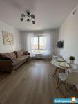 Квартира оборудована всей необходимой мебелью, техникой и посудой. Можно сразу заезжать и жить. Есть телевизор, холодильник, варочная индукционная панель, микроволновая печь, стиральная машина, пылесос, кондиционер, диван-кровать. Сдается впервые, все абсолютно новое.