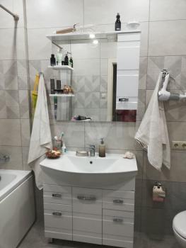 Однокомнатная квартира в новом доме, все в квартире новое, светлое. Комната: двуспальная кровать (1,6*2), гардероб, комод, косметический столик, пуфик, кондиционер, на полу ламинат.. Большая лоджия, окна во двор, перед окнами нет застройки и высотных домов. Кухня: большой кухонный гарнитур, стол, 4 стула, холодильник, посудомойка, плита, духовка, на полу плитка, теплый пол, есть двери. Санузел: совмещённый, просторный, ванная, бойлер на время отсутствия горячей воды, стиральная машина, принудительная вытяжка. Коридор: вместительный шкаф-купе с зеркалами, платяной шкаф для вещей, обувница, на полу плитка. Без животных, дети старше 5 лет. В шаговой доступности: школа, детский сад, магазины, ТРЦ Красный КИТ, ж-д станция Мытищи, МФЦ. Выезд и въезд возможен с Ярославского шоссе без городских пробок. 35000 в месяц плюс вода, свет по счетчикам. Задаток 35000 руб.