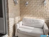 Выход на большую остеклённую лоджию, на которой есть все , чтобы провести время приятно и с пользой: раскладывающийся двухспальный диван, розетки по периметру и лампы - эмитация фонарей на улице.