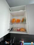На кухне расположен холодильник, кухонный гарнитур со встроенным духовым шкафом с функцией микроволновой печи, варочная панель, система фильтрации воды.