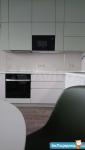 НА КУХНЕ: раскладной диван, обеденная группа, журнальный столик. Техника: индукционная варочная панель, духовой шкаф, холодильник, ПММ, микроволновая печь, стиральная машина.