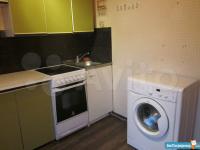 В кухне - плита, холодильник, стиральная машина.