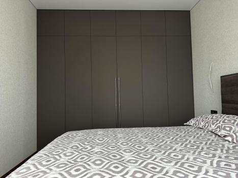 В спальне большая удобная кровать и новый ортопедический матрас 2 уровней жесткости (высокий и средний). Установлен кондиционер.