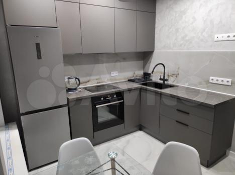 Углoвой кухонный гарнитур со встроенной техникой: варочная индукционная панель Воsh, духовая печь Еlесtrоluх, холодильник Gоrеnjе nо frоst, вытяжка Маunfеld, микроволновая печь Раnаsоniс.