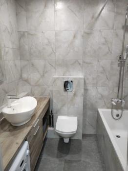 В ванной комнате установлена качественная сантехника, стиральная машина Саndy.