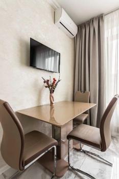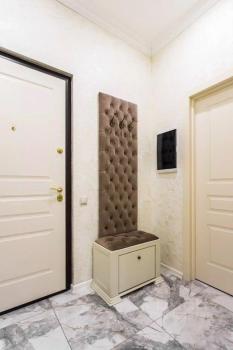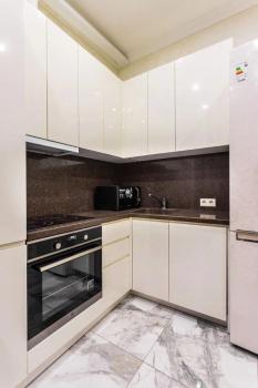 В квартире новый дизайнерский ремонт. Кухня оснащенная электронно-бытовой техникой - холодильник, посудомоечная машина, духовой шкаф, варочная панель, микроволновая печь, телевизор. В спальне большая 2-х местная кровать, вместительный шкаф для одежды, а так же, комод под телевизор. В ванной комнате, большая душевая кабина, стиральная машина оснащенная функцией сушки белья, вместительная тумба под раковиной и полотенцесушитель.