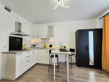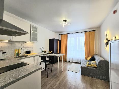Впервые сдается светлая видовая квартира-студия на 16 этаже нового дома. До метро 5 минут пешком. Квартира укомплектована всей необходимой мебелью (IKEA) и бытовой техникой (холодильник, стиральная машина, чайник, свч, варочная панель).