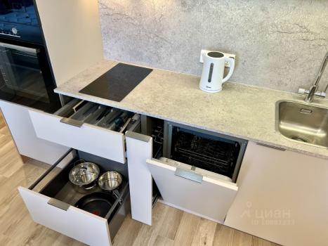 Кухня укомплектована посудомоечной машиной, встроенной техникой, индукционной плитой, посудой, в том числе для приготовления, кухонной утварью.