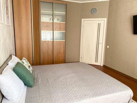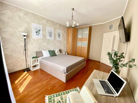 В квартире только что обновлён ремонт - новые двери, обои, кровать, стол и стулья на кухне, балкон, шторы. Сделан клининг. Огромная кухня с рабочей зоной, есть духовка, микроволновая печь, холодильник.
