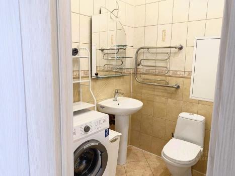 В комнате двуспальная кровать, вместительный шкаф для хранения и зона рабочего места. Есть телевизор. В прихожей также зона хранения во всю стену (до потолка). Санузел объединённый, есть стиральная машина. Вся техника в рабочем состоянии.