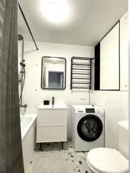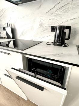 Квартира укомплектована техникой - кондиционер, стиральная машина с функцией сушки, холодильник, индукционная плита, духовка с фунцией СВЧ, телевизор 65 дюймов.