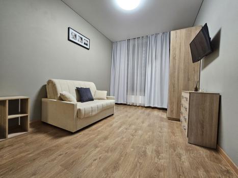 Стильная, новая квартира полностью готова к проживанию. Спальня, гостиная с кухней, с/у укомплектованы абсолютно новой мебелью и бытовой техникой. Ремонт выполнялся дизайнером. Сдаю на долгий срок.