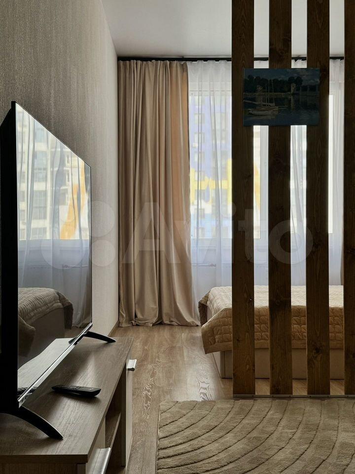 В квартире сделан свежий евроремонт. Гостям предлагается удобная планировка с мебелью как в комнате, так и на кухне. Санузел совмещённый и оборудован ванной. В квартире есть вся необходимая техника: кондиционер, холодильник, посудомоечная машина, телевизор и стиральная машина. Окна выходят на улицу, что обеспечивает много дневного света.