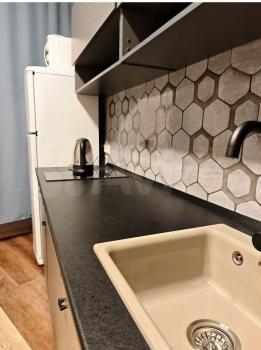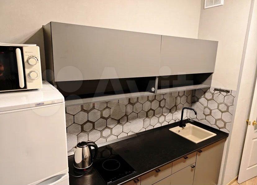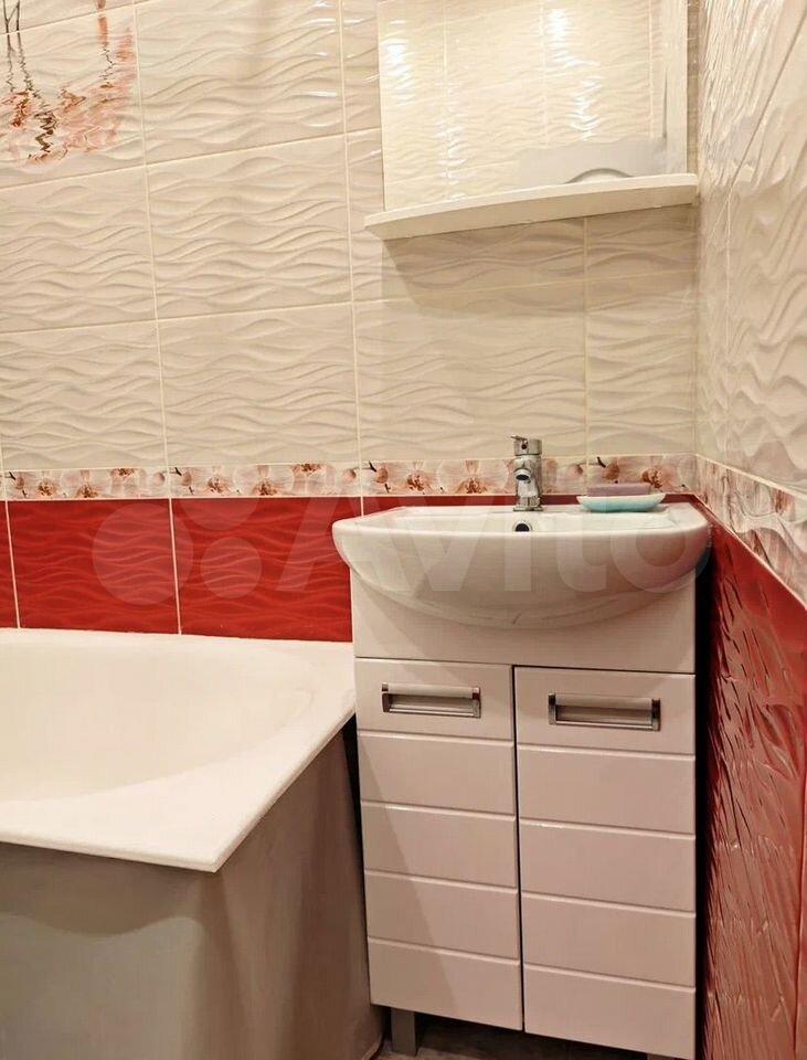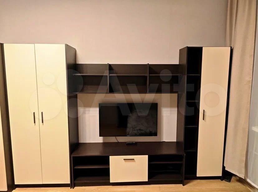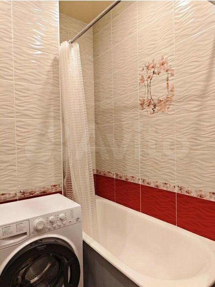 Квартира готова к заселению. В комнате и на кухне есть необходимая мебель для комфортного проживания. В наличии холодильник, телевизор и стиральная машина. Санузел совмещенный, с ванной. Из дополнительных удобств — лоджия, где можно устроить зону отдыха.