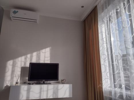 В квартире есть все необходимое для комфортного проживания. Современная мебель в комнате и на кухне, а также полный комплект техники: кондиционер, холодильник, посудомоечная и стиральная машины, телевизор. Просторная ванная с ванной идеально подходит для расслабления после долгого дня. Наличие совмещенного санузла и лоджии добавляет удобства, а мусоропровод избавит от лишних хлопот.