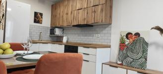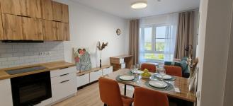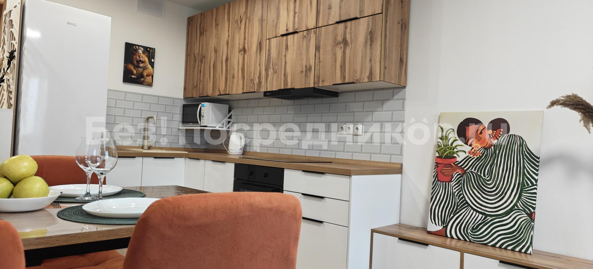 Квартира полностью укомплектована новой мебелью и техникой: телевизор, кондиционер, стиральная машина, встроенный холодильник, посудомоечная машина, духовка, микроволновая печь, варочная панель на 4 конфорки, вытяжка, Wi-Fi, утюг, пылесос, два больших шкафа, кровать с подъемным механизмом и качественным матрасом, диван-кровать с полноценным спальным местом