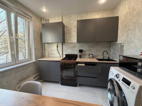 В квартире есть вся необходимая мебель и бытовая техника: холодильник, посудомоечная и стиральная машины, телевизор. Уютная кухня обставлена мебелью, в комнате также предусмотрено все для комфортного проживания. Санузел совмещенный, оборудован современной ванной. Имеется балкон для отдыха на свежем воздухе. Подключен интернет.