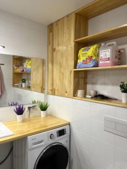 мебель - кухня, хранение одежды, спальные места, холодильник, плита, стиральная машина, водонагреватель, телевизор.
