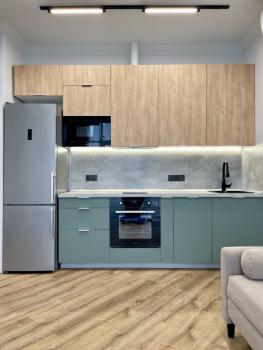 Планировка квартиры: кухня-гостиная, спальня с гардеробной, прихожая, санузел. В квартире установлены: кондиционер, стиральная машина с сушкой, посудомоечная машина, духовка, микроволновка, 2-х спальная кровать, раскладывающийся диван, высокоскоростной Wi Fi.