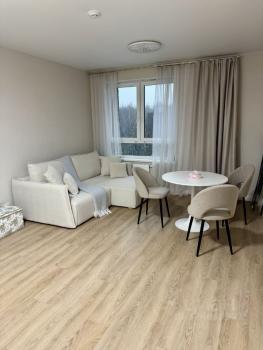 Большая кухня-гостиная 17 м2, спальня 12 м2, общая площадь 35.