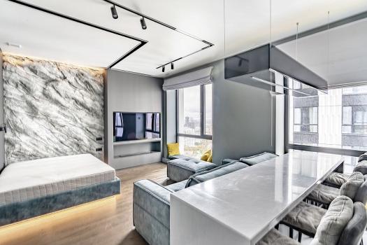 В квартире много световых элементов, поэтому в любое время суток удобно под себя настраивать комфортную зону освещения.